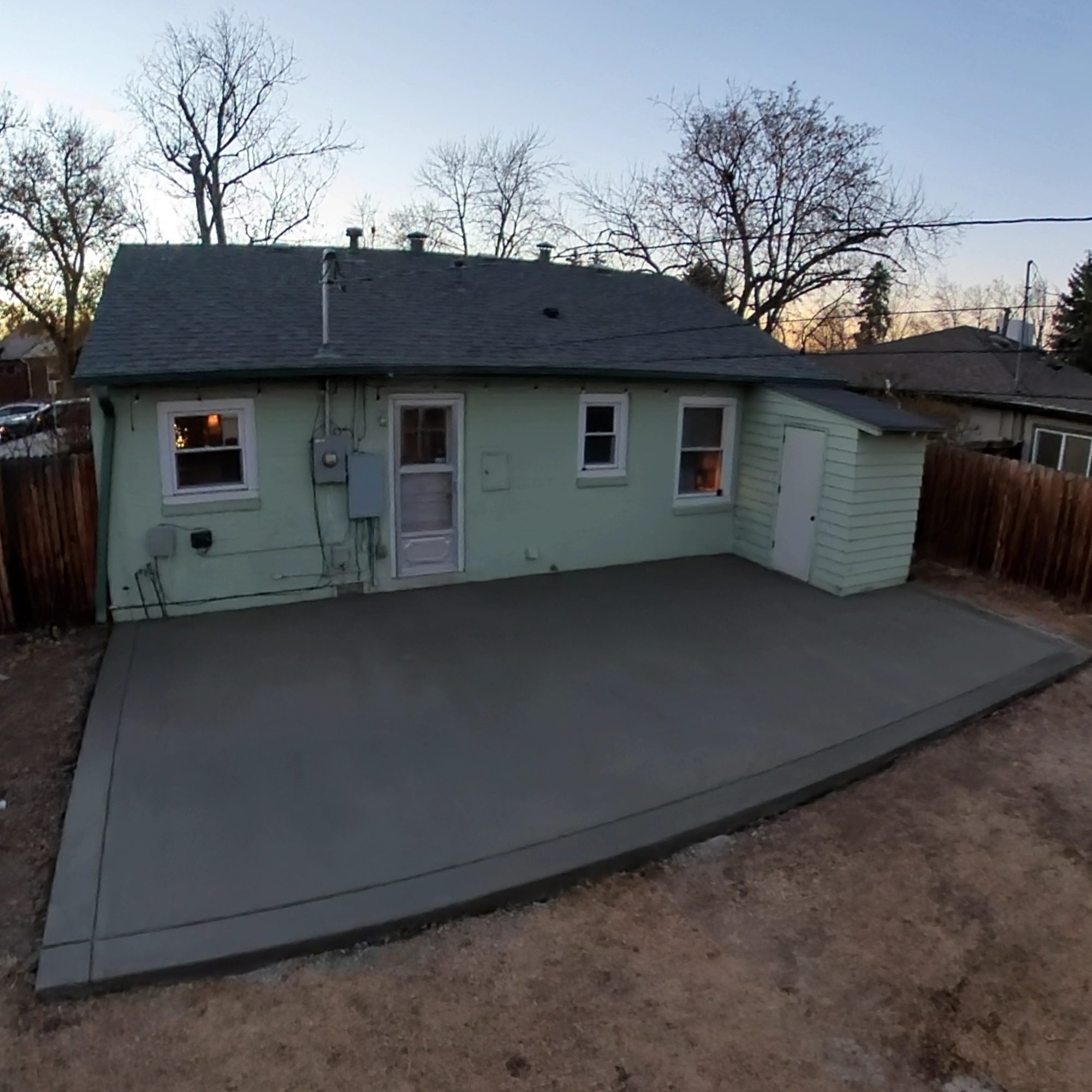 This project was completed in November of 2021. Denver Concrete Inc was hired to tear out the existing small concrete patio and replace with a much larger patio with hot tub pad. The existing concrete patio was definitely past repair and the only real option was replacement.